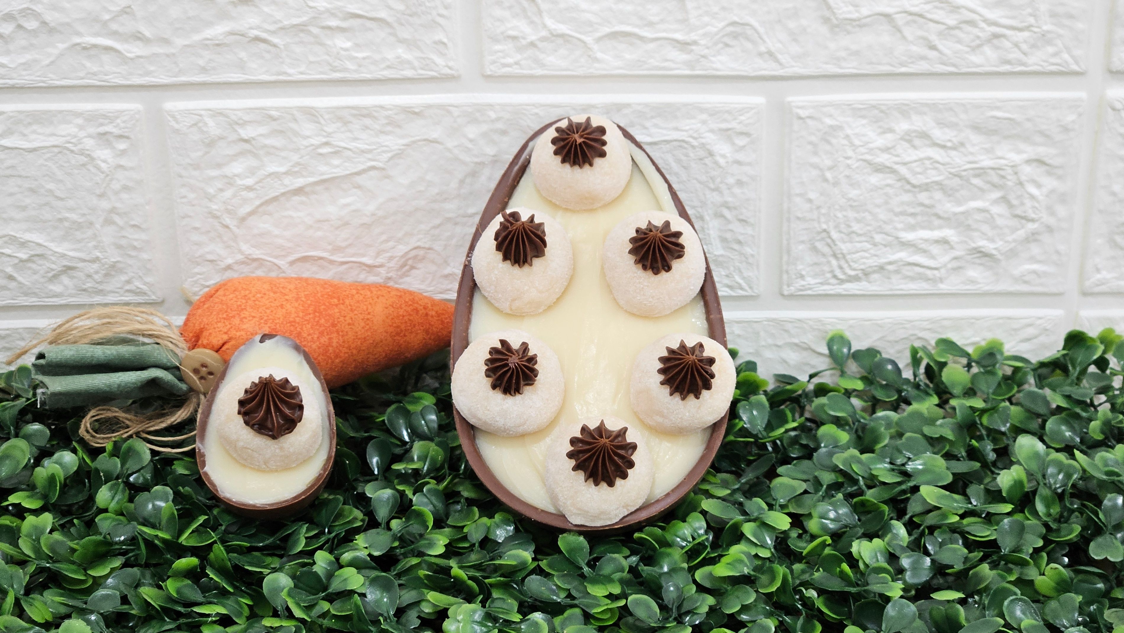 Mais de 50 videoaulas práticas, desde a escolha das formas e do chocolate, preparação das cascas dos ovos, recheios, coberturas e decorações;
