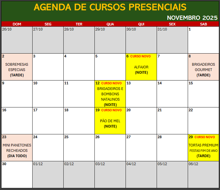 29 de novembro (das 13h às 18h) - TORTAS PREMIUM FESTAS FIM DE ANO CURSO NOVO