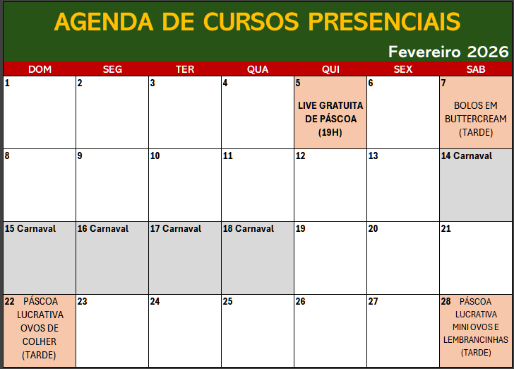 Sou apaixonada por esse mundo doce da confeitaria e por isso estou sempre me dedicando a ministrar cursos presenciais e online, para que mais pessoas possam aprender, seja para fazer doces para a família, para começar um negócio ou até mesmo se aperfeiçoar na área.