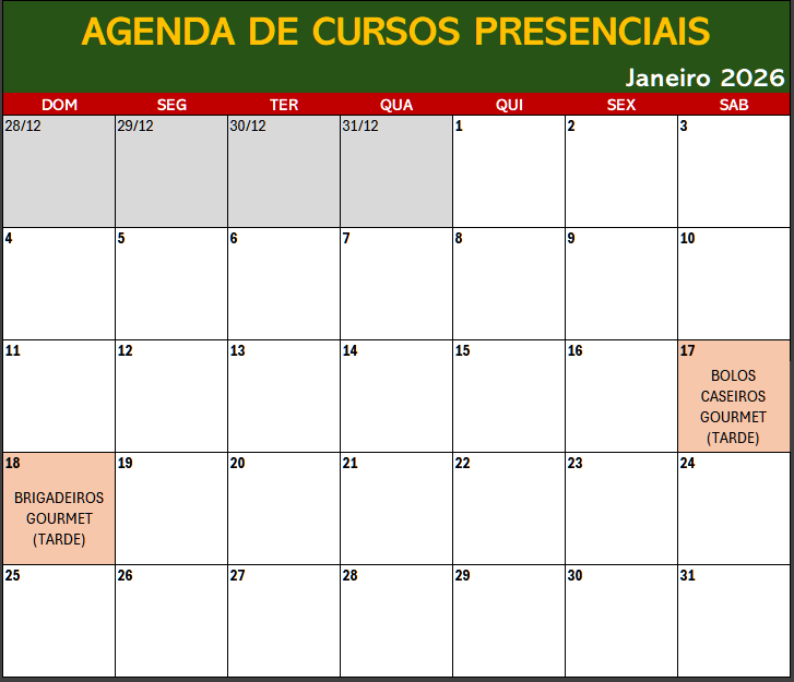 17 de janeiro - Sábado (das 13h30 às 17h30) - BOLOS CASEIROS GOURMET